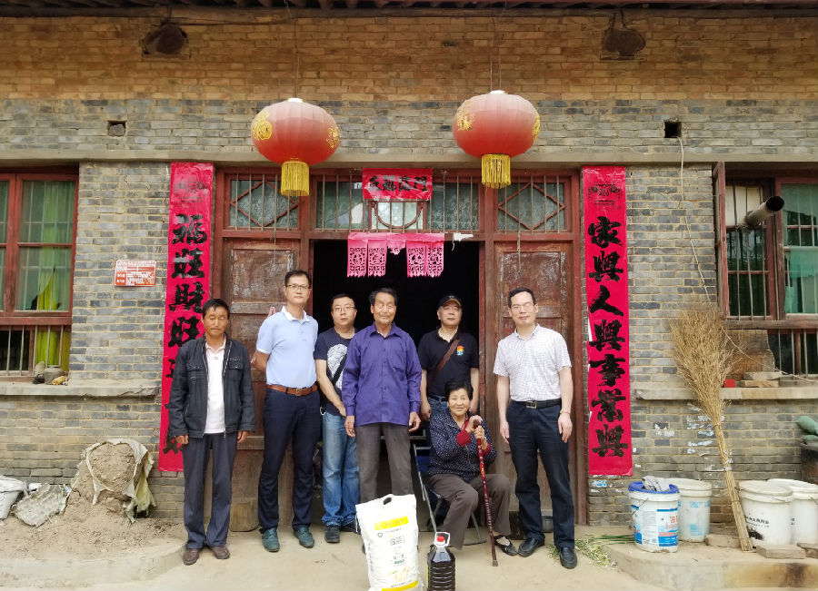 张书记一行先到坚固村村委会和我校驻村干部齐基进行交流,详细了解近期扶贫工作开展情况。在村干部的陪同下,走访了咪咕体育 结对子帮扶农户家庭,一行老师亲切向老乡了解他们的身体情况、今年的夏收情况及家庭收支情况,鼓励他们发展养殖,将小麦做成绿色成品面粉,放在学校捐建的电商平台上销售,增加经济收入。