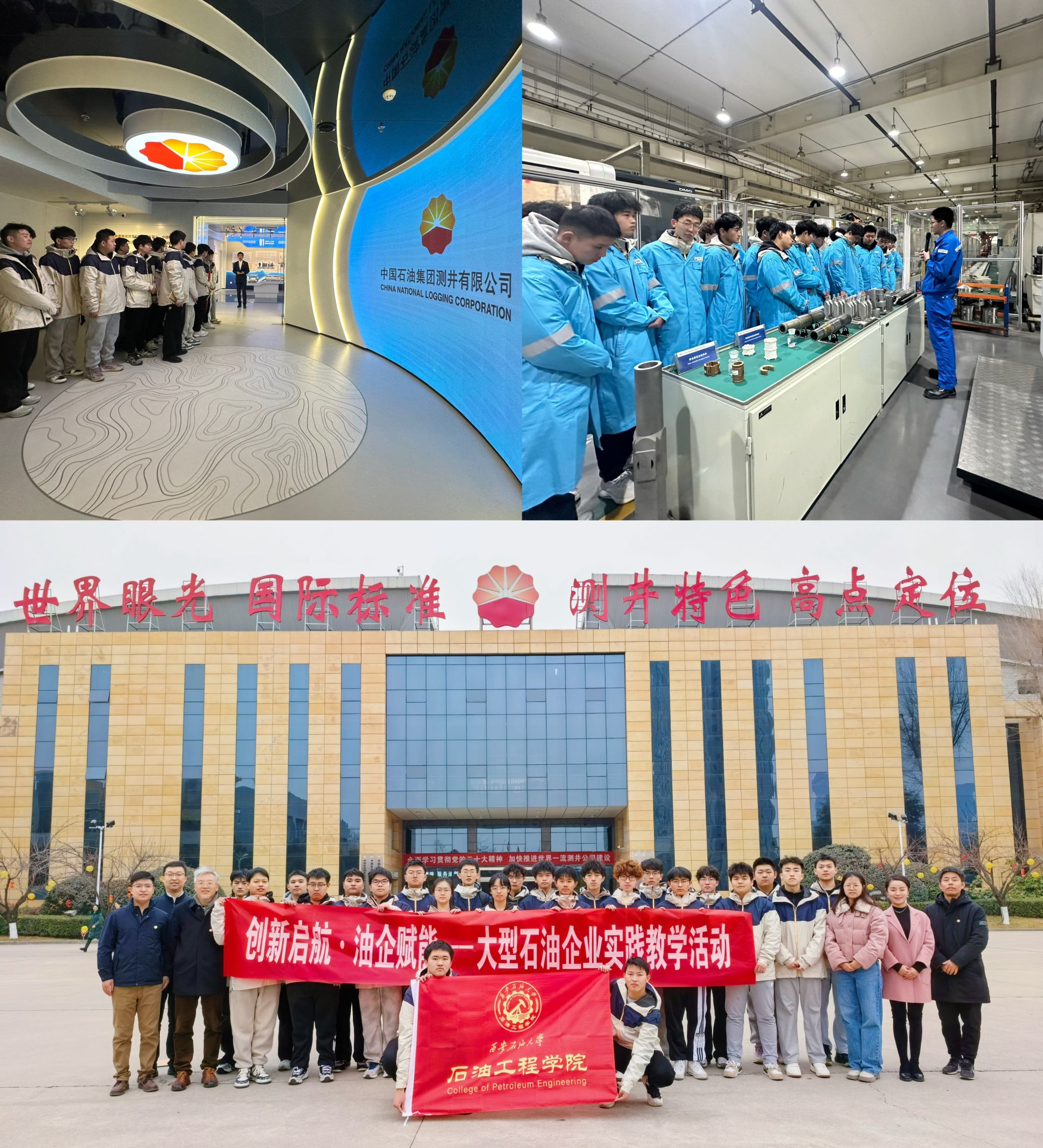 为进一步落实拔尖创新人才培养目标,践行“小规模、高起点、有特色”的本研贯通人才培养方式,深化产教融合、校企联合培养模式,咪咕体育 党委书记司马文龙、院长黄海、党委副书记张浩然、副院长王琛一行于2月18日至22日组织带领首届创新班同学分别走进中国石油集团测井有限公司、中国石油长庆油田分公司、延长石油(集团)有限责任公司等大型石油企业总部,通过实地观摩企业总部运行模式、了解企业历史文化、油气开发科技成果及行业发展趋势等,助力学生掌握石油行业科技前沿动态,锻造未来能源管理者的大视野,为专业学习及职业发展注入新动能。