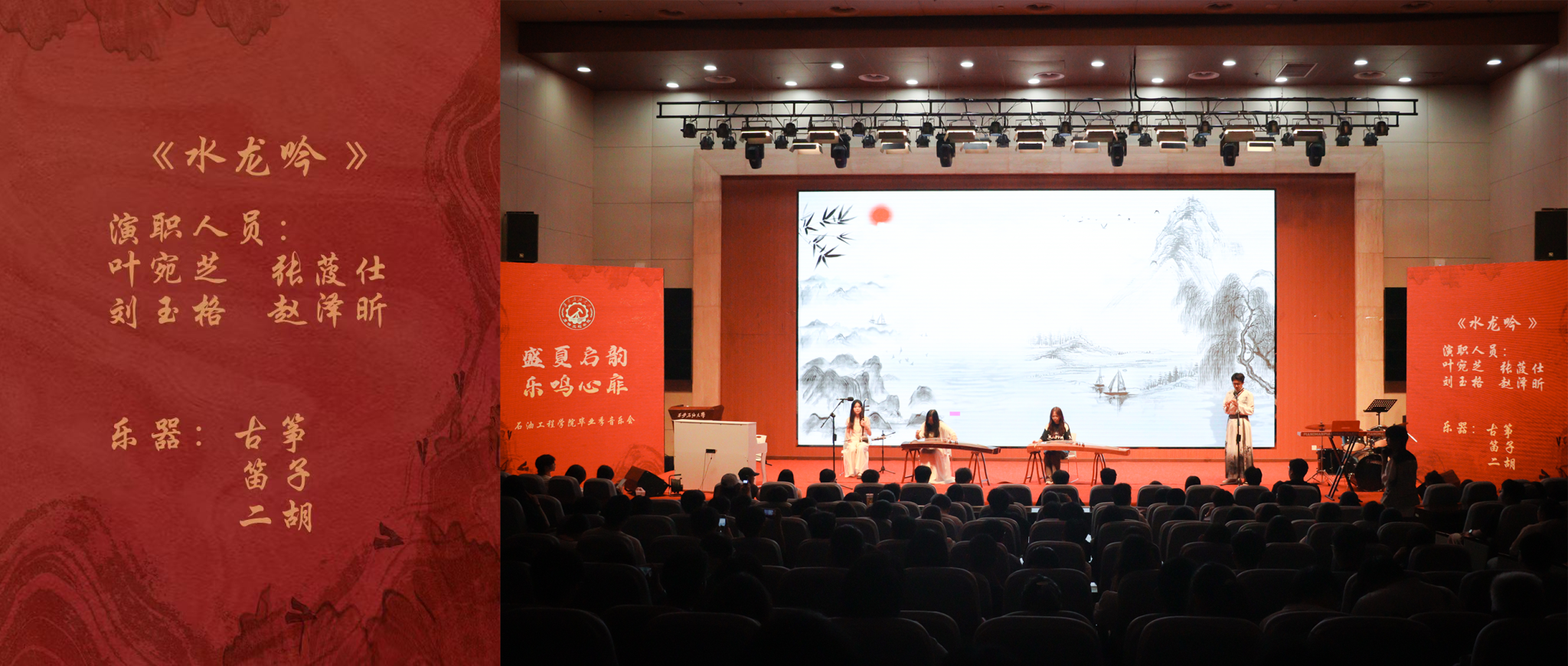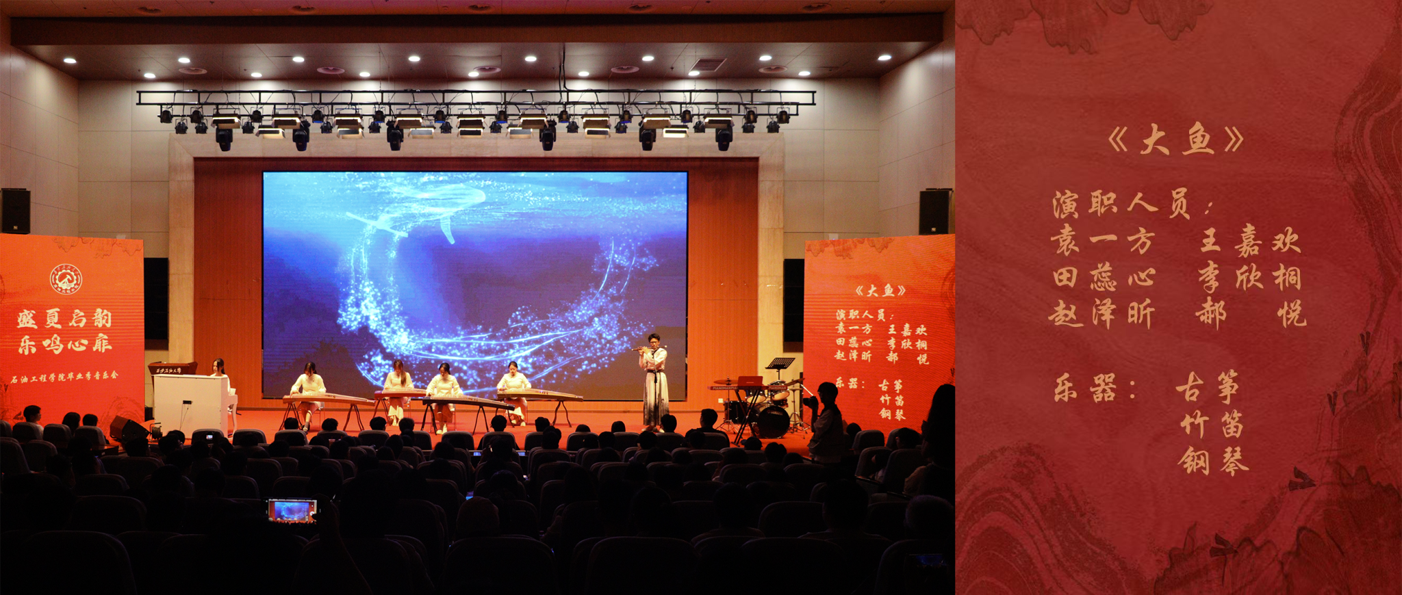 《水龙吟》的民乐奏响,如蛟龙出海、气贯长虹,借由传统民乐的磅礴气势,展现学校的深厚底蕴在新时代将孕育出无限可能,学科建设、科研成果如繁星闪耀,汇入教育星河璀璨之海,一届又一届的学子将从这里扬帆启航,奔赴属于他们的星辰大海,而学校也将在教育的长河中熠熠生辉,永远闪耀,不断书写辉煌的篇章,向着更加美好的未来奋勇远航。