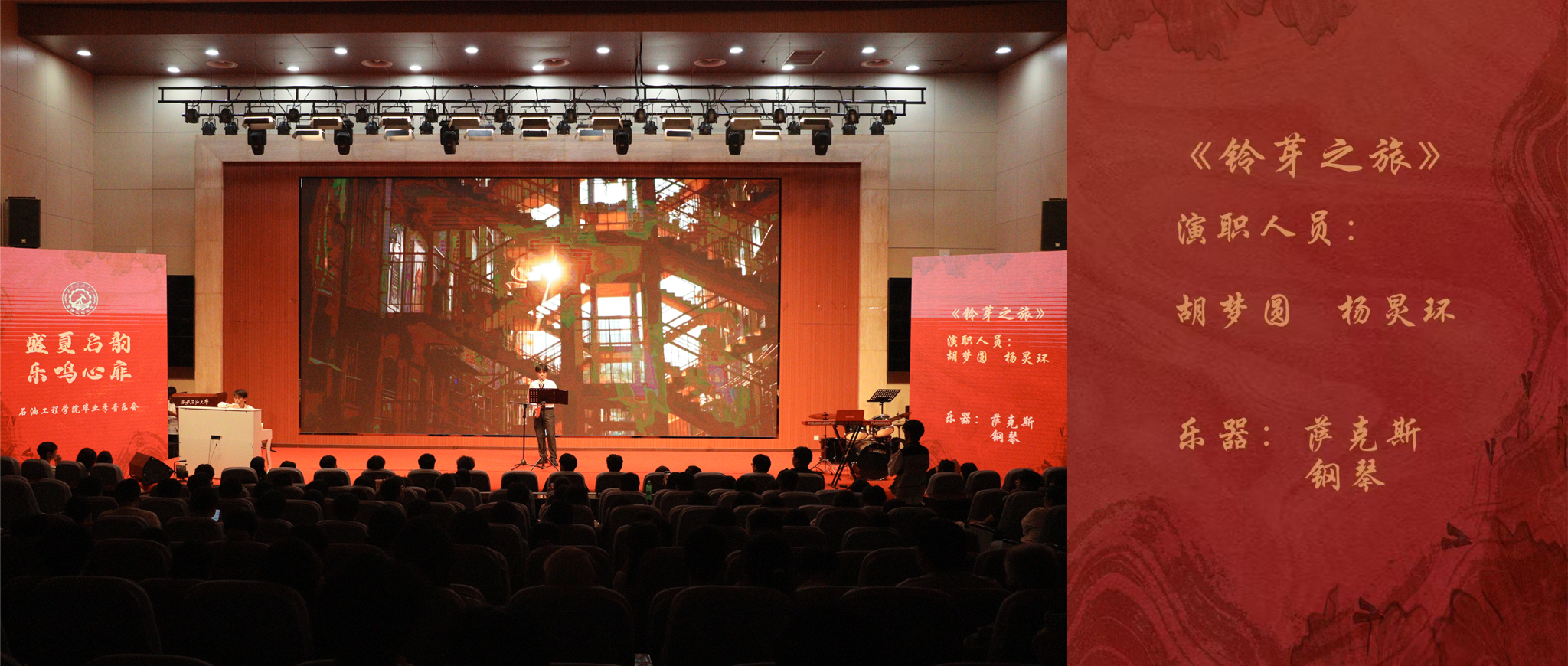 为深入贯彻落实学校第三次党代会精神,积极响应“一流西石大、文化西石大、幸福西石大”建设,传承和弘扬石油精神、铁人精神、春雨精神,66日晚,咪咕体育 “盛夏启韵,乐鸣心扉”毕业季音乐会在鄠邑校区图书馆弘石报告厅深情上演。音乐会以校史脉络为叙事主线,通过四个篇章的音乐演绎,串联起学校74年发展历程中的重要节点,为师生呈现了一场兼具历史厚重感与青春感染力的视听盛宴,咪咕 师生及兄弟院系嘉宾400余人共同观看了此次演出。