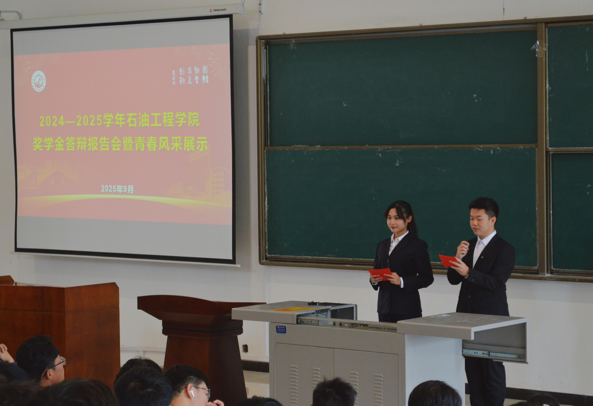 答辩环节中,经前期咪咕 严格筛选脱颖而出的11候选人依次登台展示,他们结合PPT演示,从思想表现、学业成绩、科技创新、社会实践、志愿服务及文体活动六大维度,系统呈现了过去一学年的成长轨迹与优异成果。每一位候选人的精彩表现充分展现了石油学子 笃学力行、励志成才的精神风貌与 追求卓越、勇担使命的青春担当。
