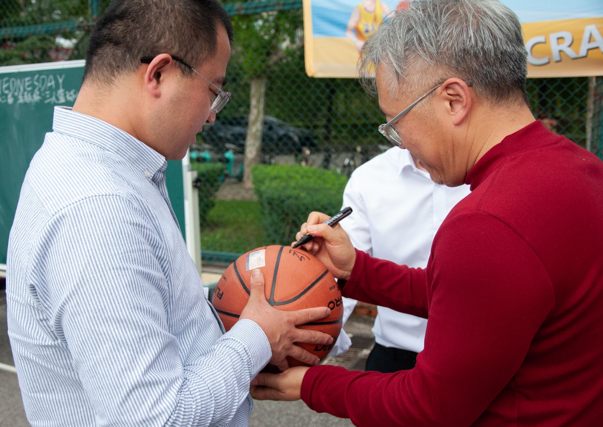 司马文龙与黄海共同为纪念篮球签名