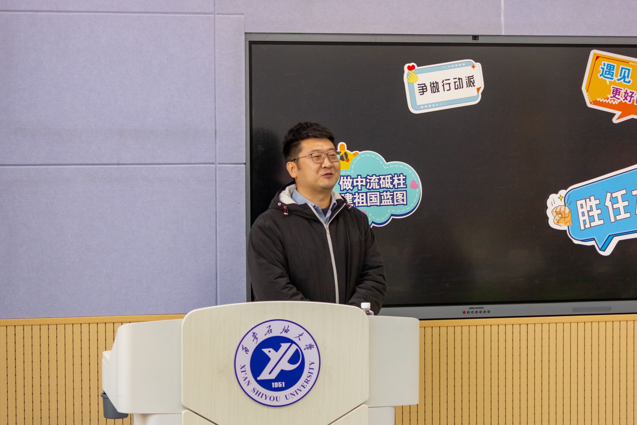 为进一步加强班级建设,提升班长工作能力与班级管理水平,12月1日,咪咕体育 班级建设圆桌派第251201期班长“油”话说在鄠邑校区博览楼117多媒体教室举办。咪咕 党委副书记艾二鑫,教师代表、三级教授、博士生导师石军太,班主任代表王玉龙及院内外班长代表参加,活动由学生工作办公室副主任史阳主持