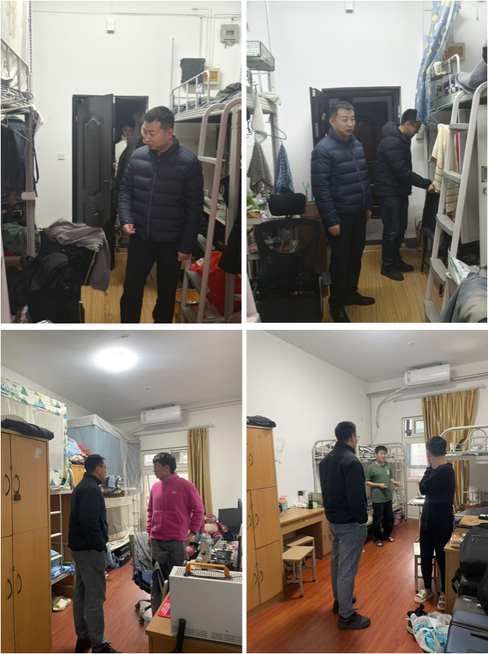 随后,深入雁塔校区、明德研究生宿舍,聚焦用电安全、防火防盗等关键环节,排查大功率电器、私拉电线等问题,检查门窗锁具及水电关闭情况。艾二鑫叮嘱留校研究生们保管好贵重物品,牢固树立安全底线思维,严守用电规范、筑牢宿舍安全防线,养成整洁通风的良好生活习惯、共建舒适家园,强化自我管理与互助协作,培育优良宿舍文化,打造学风优良、和谐温馨的成长共同体。