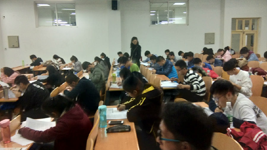2017级辅导员张楠老师巡视考场指出英语四级作文十分重要,书写的字体工整,字数在要控制在150字左右,注意分段等一些写作技巧,并且建议各班学习委员在批改作文和翻译时选取优秀的文章在班级内公示。