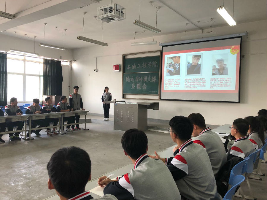 会议伊始,主持人康怡介绍了到场的老师和评委,并汇报了本次会议的出勤情况。她以PPT形式汇报了团支部的成员组成、思想建设、组织建设、学风建设、团支部活动和团务知识等六个模块。校团委的2位评审认真听取了汇报,并分别对团支部成员进行了提问,面对提问,同学们也踊跃地发表了自己的意见和想法。