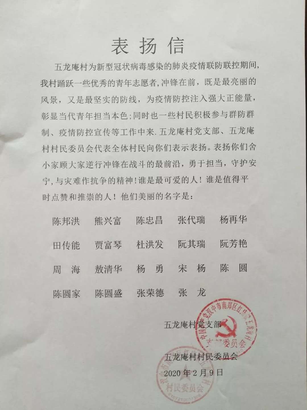 咪咕体育 石工1702班陈圆同学所在的陕西省汉中市南郑区红庙镇五龙庵村村委会积极响应上级对新冠肺炎疫情的防控部署。作为退伍大学生同时身为我校石工1702班班长的他,在了解情况后,主动向所在村委会提出参加战“疫”的请求,为疫情防控再冲锋。在村委会的安排下,从24日至今,作为防控值班人员,严格落实工作职责,在本村24小时疫情监测防控点,对过往人员进行登记、测量体温并宣传疫情防控信息,并协助村干部逐家逐户完成本村外出174名打工返乡人员信息排查。他说:“退伍不褪色!面对这场没有硝烟的战争,作为一名退伍大学生和学生干部,要铭记部队和学校对自己的教诲,积极主动承担责任,为国家贡献自己的一份力量!”