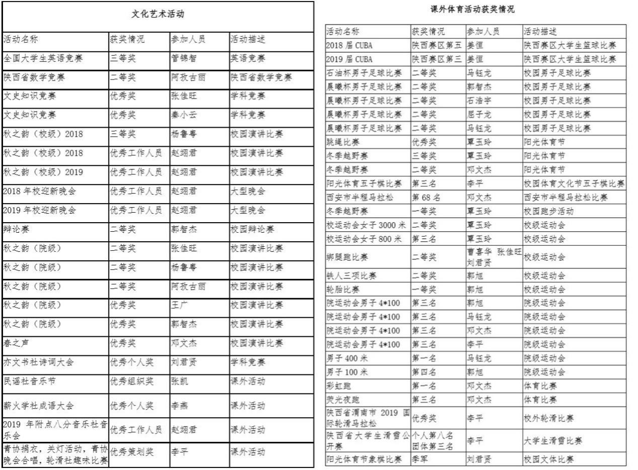 ——团结拼搏,争创佳绩。储运1801班成员积极参加各类学科竞赛、校园文化活动和社会实践活动,在校迎新晚会、“秋之韵”诗文配乐朗诵比赛、草地音乐节、附点八分音乐社音乐会、社团联合会晚会、院迎新晚会、陕西赛区CUBA、校篮球赛、“晨曦杯”足球赛、院篮球赛、西安半程马拉松、长安半马、校运动会、冬季越野赛、高校马拉松团体赛、院运动会、陕西大学生滑雪公开赛、彩虹跑等一系列文体活动中取得优异成绩;在数学建模、陕西省高数竞赛、历史知识竞赛、心理健康科普知识竞赛、文史知识竞赛、成语大会等学科竞赛中也取得突出成绩。