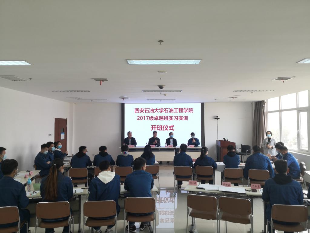 根据教育部工程教育认证和学校人才培养方案要求,317日下午2点,咪咕 在西安市高陵区长庆油田西安油气综合实训基地成功举办咪咕体育官网 2017级卓越班实习实训开班仪式,本次仪式由长庆油田第一采油厂厂长助理唐玉龙、咪咕 副院长赵金省教授、实习指导教师王金龙博士、2017级辅导员孙浩哲和2017级石油工程专业卓越班同学共计40余人参加。本次仪式由我校校友、长庆油田西安油气综合实训基地党支部书记胡霄主持。