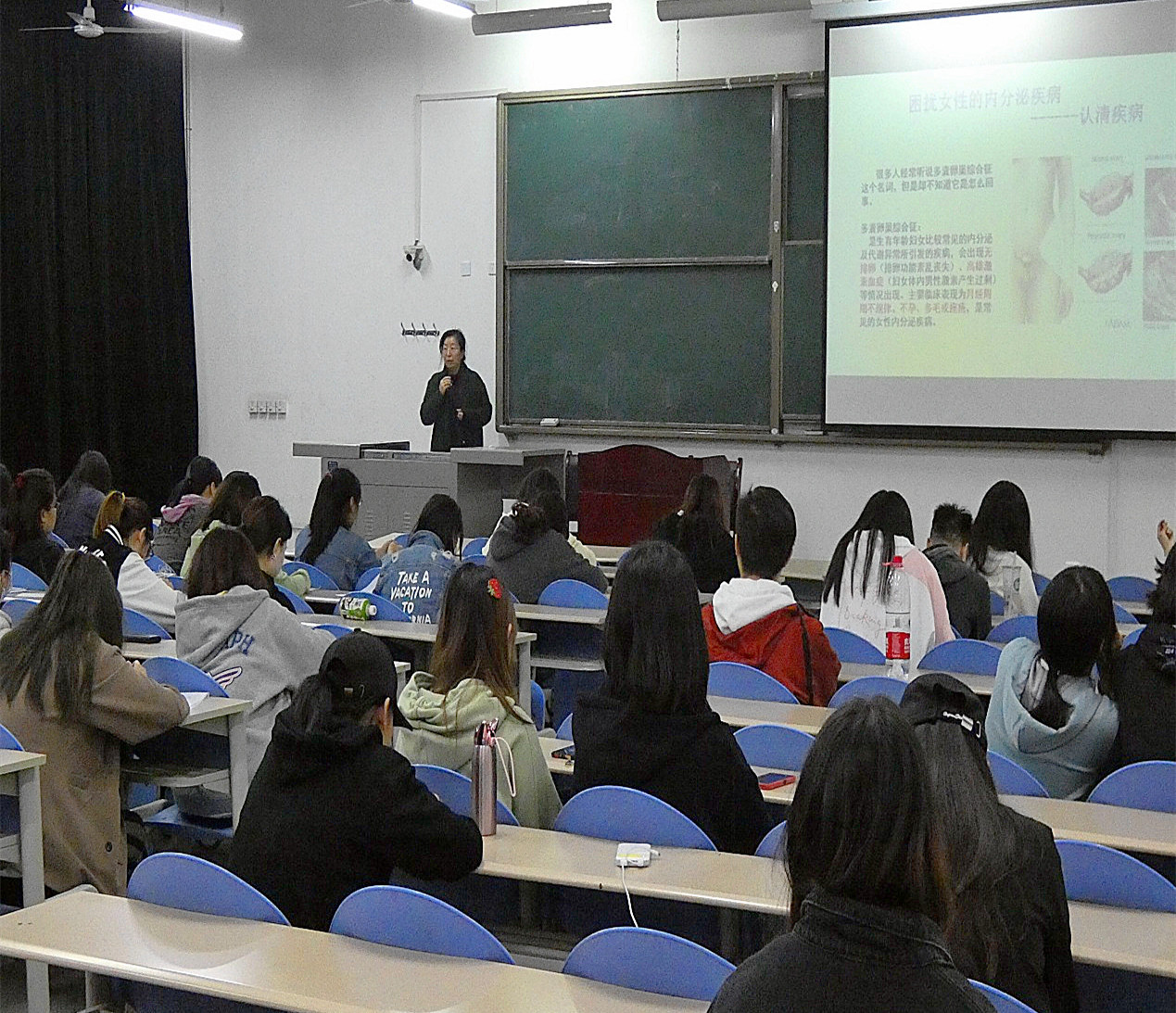 讲座中,余亚莉主任医师和张玲副主任医师围绕女生在大学时期的生理特点及同学们比较关心的健康问题,介绍了女性疾病的早期预防和自我诊断的相关知识,并就常见的妇科问题,提醒女大学生们要重视定期体检,并养成良好的生活习惯。