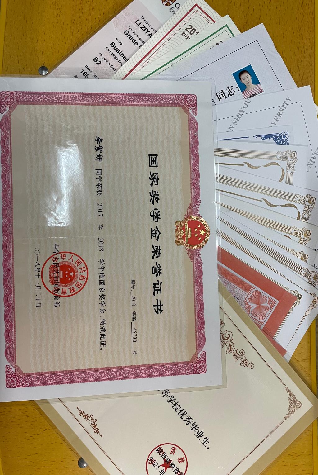 在学习方面,勤奋刻苦,本科期间一直把学习放在首要位置,连续三年综合排名第一,专业排名第二,以第一名的成绩获得了本校的推免名额,并获得了国家奖学金,中石油奖学金,品学兼优一等奖学金,以及“十佳大学生”,“陕西省2021级普通高等院校优秀毕业生”,“优秀共青团干部”,“优秀班干部”,“优秀共青团员”,“三好学生”,“铁人式大学生”的荣誉称号,除此之外,本科期间也以511分和488分一次性通过了大学英语四级和六级的考试,且连续俩年获得全国大学生英语竞赛二等奖,获得“外研社杯”英语演讲比赛校级二等奖,三等奖以及写作比赛校级二等奖。利用课余时间自学,取得了剑桥商务英语BEC中级证书。