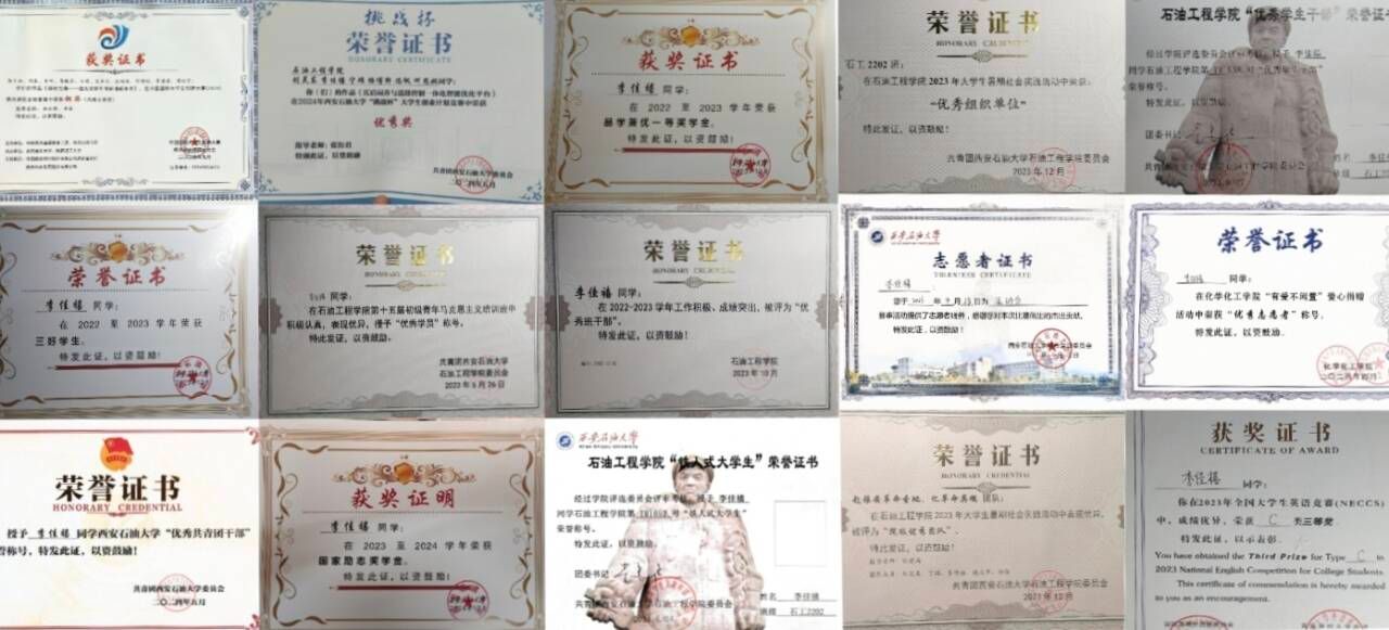 连续两年稳居专业前列,本科期间平均绩点3.89,专业排名第四,凭借扎实的专业功底与不懈努力,斩获多项学业荣誉。其中包括国家励志奖学金、品学兼优一等奖学金,获得“三好学生”和“铁人大学生”等荣誉称号,用成绩印证“学业是立身之本”的信念。